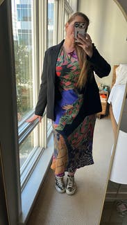 Wore to a broadway show and could also be dressed down with a sweater on top. Funky, fun, and great colors. Lots of compliments