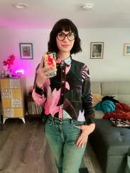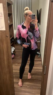 So many compliments on this shirt! Fun vibrant pattern wore a couple times! Great look tucked in or out.
