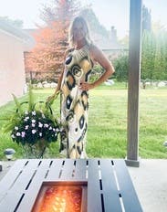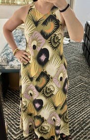 Plan on buying during next sale. It’s a more casual stretchy cotton maxi dress but the pattern is so unique and the colors are perfectly blended that it can be work casually or done up for a date night or event.