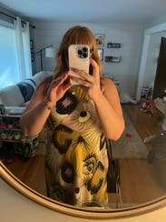 Not the most flattering neckline for me but cute. Flowy and long, so threw a cardigan over my shoulders to wear to the office on a hot day.