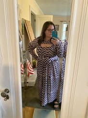Loved the idea of the shape of this dress, but it was a bit big overall and somehow the sleeves felt off to me in a way that sizing down wouldn't have fixed. I wore it to my book club and did receive several compliments, and I will say it was extremely comfortable! I love Untitled in Motion's designs and have had experiences both where items fit super well and where they've been off, this one just wasn't quite right for me but was fine for a casual night.