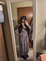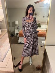 Loved this dress for everyday wear. I often put a sweater over it so it didn’t look like I was wearing the same dress every week. Loved the pattern and cut outs. Great preggers dress (I’m 30 weeks).