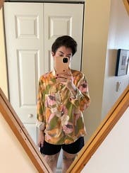 Love the print on this shirt and the buttons in back the most. Sized down due to other reviews, and while I could have taken it a TAD more oversized, the XS fit just right.
