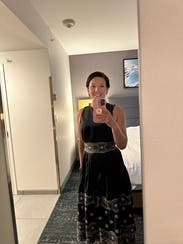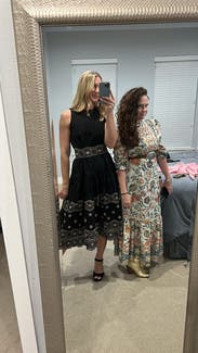 This is the second time I’ve worn this dress for a rehearsal dinner and I get so many compliments on it every time. A couple things to note - the zipper for this is very sticky so you’ll need someone to help you and I’d recommend fashion tape under the belt area so it doesn’t fold over when sitting. Otherwise this dress is a a favorite!