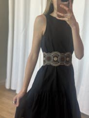 Really liked this dress! Fit great and was easy to move in. There is a little bit of a heaviness/excess fabric to it, but it was great for going out to dinner in a very hot summer in Paris. Would rent again!