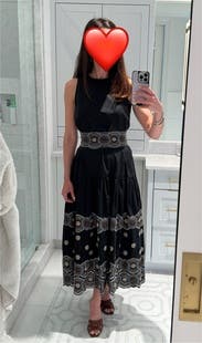 I’d been eyeing this dress for a while, but not sure it was worth the stalk. It was flattering, but I didn’t like how the waist embroidery would roll up sometimes. Just ok on for me. TTS. Wore to work.