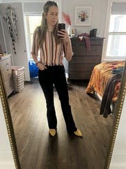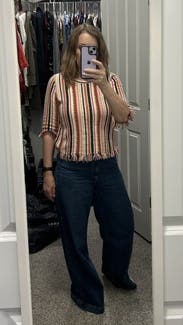 Cute top but the fabric is scratchy if you are sensitive to that. The cut is also cropped so it’s not really work appropriate unless you are just on zoom.