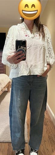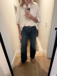 I wore these with barrel leg jeans and my high heeled clogs. So many compliments! I’m not normally a lace girl and I was a little skeptical. But it hit the mark in terms of adding a little class and sass to my denim for work. Fit was great. The fabric a little drapier than expected, but a tuck and blouse out fixed it.
