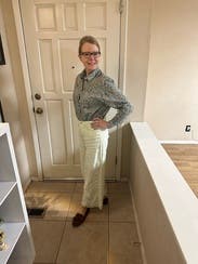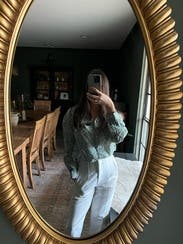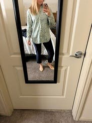 I wore this shirt a million times. I usually dislike collared shirts but this was flowy and laid perfectly. I wore tied at the waist with faux leather pants, loose and flowy with leggings and belted with the matching pants.