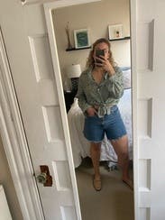 Fun option to wear over anything! Ended up wearing for a lake weekend but also buttoned up with white jeans to work. I rented with the matching pants but felt like it looked to casual as a set to wear to work like I originally planned TeamRTRReview