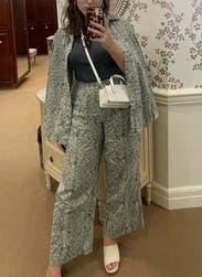 I ended up wearing this outfit several times because it was so flattering, perfect light set for summer, and I received so many compliments on it - I really wish I purchased it! It's a linen material so it's light and the pattern hides any wrinkles it may have. The top ran slightly large overall but i think it's supposed to be a little baggy, any smaller I think it wouldn't have buttoned around my wrists. My family joked that I looked like I was wearing pjs but I like the style!