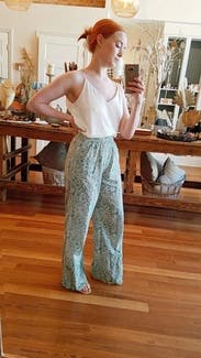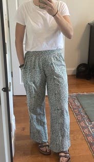 I love these pants so much. Wore with a white tank, denim jacket and sandals for casual dinner out; with white white shirt and blazer for work; with a knotted white linen shirt for a picnic. Got compliments every time I wore these- and more importantly, they feel SO comfy and breezy.