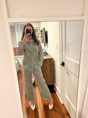 Wore with the coordinating top & was definitely a glorified PJ look! Ha. Comfy & fun print