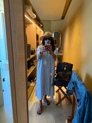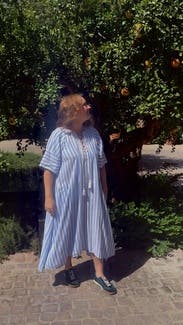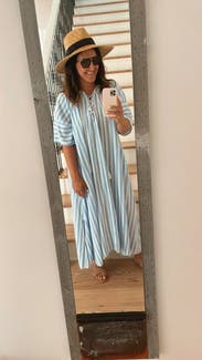 This Vanessa Bruno striped dress was a win for my trip to Morocco! Super comfortable, breezy, and light enough for 88°F weather. The pockets were such a bonus, and the fit (Size M) felt easy and relaxed without being sloppy. Great mix of stylish and practical!
