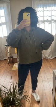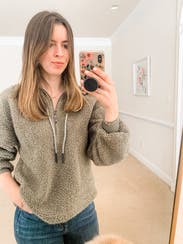 Loved this sweatshirt so much! The color is a great shade of greeny-grey and it’s not too heavy or too light. Perfect for spring time or chillier summer nights. The reason I gave it 4 stars is lack of pockets. Any type of pocket would have made this a 5 star rental!