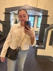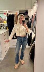 Loved this jacket felt very sophisticated and fancy in it. Elevated jeans and tee shirt and perfect for these in between weather weeks. Would have kept it if wasn’t so expensive!