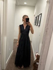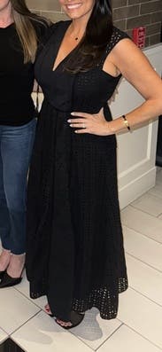Overall, this dress fit perfectly. Even though I’m petite I decided to go with the regular length because I felt it would look better with heels. The eyelet fabric is gorgeous and the waist is tapered perfectly. I decided not to wear it for this particular event because the fabric was a little heavier than I thought. However, I will definitely rent this again.