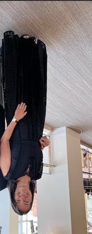 I love this dress. Sometimes long black dresses can feel heavy, but this one is light and airy due to the sheer layer over the slip. When I first tried it I wasn’t sure if it would fit my bust, but it did and felt great; not too tight. For work I just pulled up the slip in the front and that worked to cover the cleavage. If I was wearing to a party I would just leave it as is and have a really deep V neck. Sexy and sophisticated. Veronica Beard is so well made. The fabrics are luxe and feel expensive.