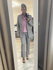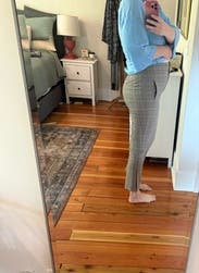 I should have sized up in these pants. They were sucked to my thighs and rear like sausage casing! If you are an hourglass, you may need to size up by 2 sizes. I also don’t love the cropped flare. But I have 5 stars because the compliments I received at work on this set were NON-STOP. Though they felt tight, I wore the longer top and the blazer also covered the tightest spots. So no one thought they looked too tight. Oh, and they really did not stretch over the day. Which is actually good because that means they won’t get saggy in the right size.