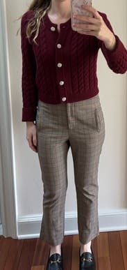 These pants are really cute when worn together with the matching blazer as a suit. got tons of compliments when I wore the full suit. That said, I think the pants material is a bit thin, unlike with the blazer. They definitely don’t seem like the quality matches the retail price.