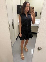 The best dress - so comfortable and has interior clips so you can’t see between the buttons when you sit down. A little short when it rides up, but my work is casual and it was still appropriate if you pull it down to full length. Also wore on a date after work and it transitioned day to night seamlessly!
