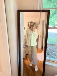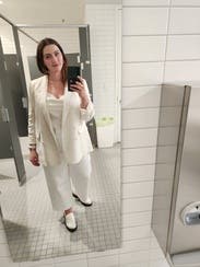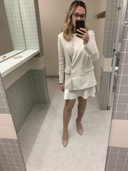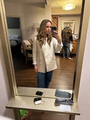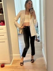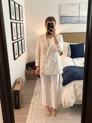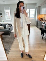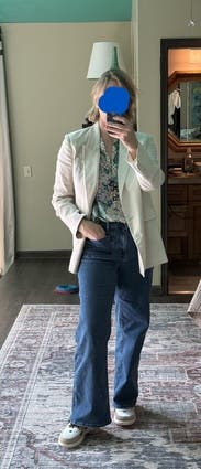 The style is cute and I liked it with jeans. I tried to wear it to work one day but the white was hard to match because it’s a linen material. It crushes easily and looked a little grumpy so overall it wasn’t my favorite rental.