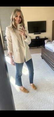 Got this for work but didn’t end up wearing. Just thought this looked too big on me even though it’s supposed to be an oversized look. Maybe better for a taller person. I always get size 6 in VB because that’s what fits my shoulders.