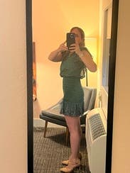 Fun green dress that was easy to wear to work or dinner. It was a bit long in the torso so I had to wear a belt so it stayed up—maybe I needed a smaller size?