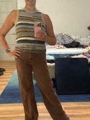 Love the Fall colors. Heavy and well made knit. The arm holes were a little large, perfect if you want to layer but not too big if you want to wear on its own.
