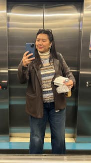 got so many compliments on this. paired it with a thin beige turtleneck underneath, great for business casual or everyday
