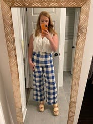 These plaid pants are perfect. I love everything about them. They fit perfect. The length is perfect. The pattern is perfect. I paired them with the matching blazer for a super cute look.