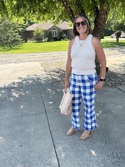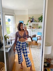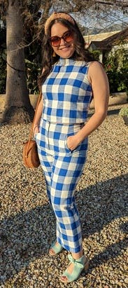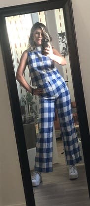 I’m OBSESSED!!!!!!! This was so chic. Its giving picnic table and bath and body works pattern but it is oh so good. I sized up and thank goodness because I don’t think my hips would have fit in my normal size 14. The matching top was perfect but I could easily wear a white bodysuit or top with these pants.