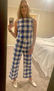 One of my fave sets of all time. Wore it to a party, bike riding, a winery. So cute, comfortable, and versatile. Pants ran a little large.