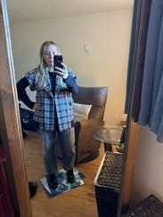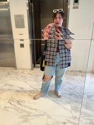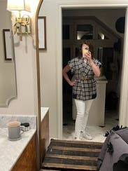 I wore this blazer as my airplane outfit with a camisole, some cigarette jeans and loafers. This is a warmer blazer so I didn't need to layer up on the plane as I usually do. I got lots of compliments. I would rent again in the fall.