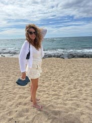 Got the coordinating jacket and got lots of compliments on the set. I usually need to size up in pants in VB but wish I hadn't in these. My usual 12 would have worked better. Note the fabric is kind of stiff and there is some bulk in the shorts waistband and no stretch.