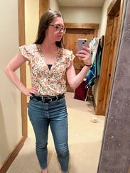 This was such a fun top. It was easy to pair with jeans, slacks, and long denim skirt. I might buy it- still considering.