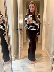 This jacket was such a fun and stylish piece. The black and white sequin stripes add just the right amount of sparkle without feeling over the top. It’s cropped but still hits at a flattering spot, and it pairs beautifully with high-waisted trousers for a sophisticated, Parisian vibe. The fit is true to size, structured but comfortable, and perfect for a dinner, event, or work function when you want to stand out subtly. Loved this one!