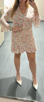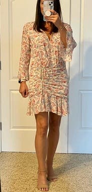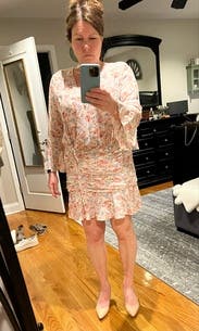 This is such a flattering dress! Perfect for a brunch or a afternoon party. Does run a little small. I'm usually a size 6 and rented an 8 and it was still slightly small because there's no stretch at all. And it's a little short even for me being 5'2". All together would rent again.