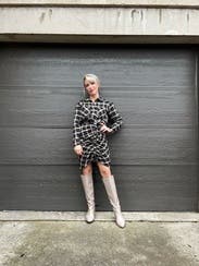 Recently having lost nearly 100lbs, I’m still trying to find my fashion vibe. This is the first piece by Veronica Beard that I’ve ever worn, and it feels like a designer is designing just for me! I love everything about this outfit from the texture of the material (so soft and the PERFECT weight) to the way it hugs and highlights the few curves I still have! A subtle shimmer is in the material that really elevates this garment. I can’t wait for my next VB piece!!