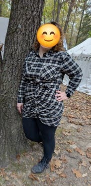 This wasn't 5 stars for me just because I don't think the plaid flannel was it for me. The fit was TTS. Slightly snug across my hips/butt and there's a zipper before the buttons start so if that's a concern you may want to size up but it was quite roomy on top. All of that said, it was slimming and there is a gold thread running through it that makes it a little more special. Love VB so I wanted to love this!