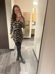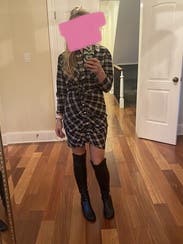 wore this to dinner, very cute, but definitely on the shorter side, would advise tights