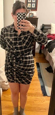 I loved this but it's pretty short (had to wear leggings for work) and tight all over. I sized up but could have sized up two sizes! It was still pretty comfortable and very cute!
