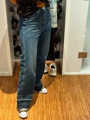 So cool and flattering, perfect jeans, perfect wash. I’m 5’3 and the length works with 3” boots- makes my legs look super long. Also cute with a very wide cuff and then just right with flats. Slightly big in the waist.