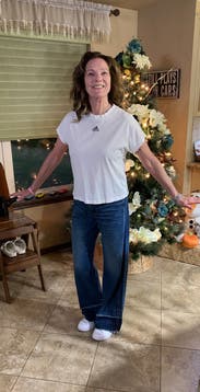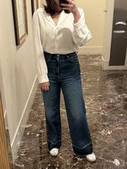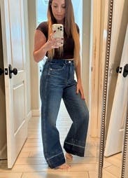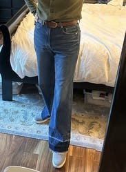 These are a great pair of wide leg jeans without swallowing your frame. I like the color and the raw hem made it easy to fashion tape them under since I’m too short for almost any jeans!!