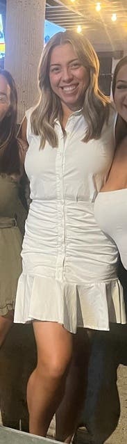 This dress was so cute and comfortable. I'm a little curvy, so it was a little tight on me, but it worked! I did have to keep pulling it down as it rose when I walked, but I didn't care. It was so flattering and just an easy piece of clothing. The ruching in the hip area and slight bagginess in the midsection help to hide your work in progress areas. Lol. You can still see a little of my muffin top in the picture, but it's not too bad. I will definitely rent again in a bigger size. I may even buy it.