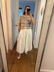 Wore this with white linen shorts and beige Prada loafers to my daughter's year-end school ceremony. Got tons of compliments and felt very put together. Highly recommend!