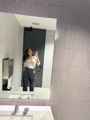 I love the fit of this shirt, wore it in a trip and it was super cute and easy to pack. It has snaps to keep your bra straps in place, which was great. Was a bit of a weird length so made it hard to tuck in. A bit low-cut for work if you have a larger chest. Overall loved and would rent again.