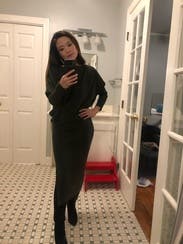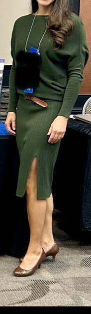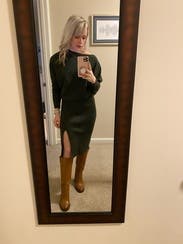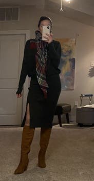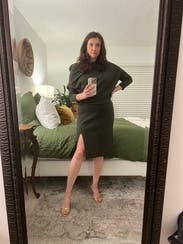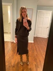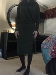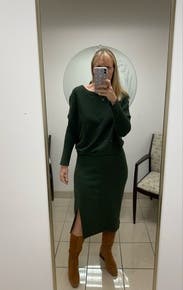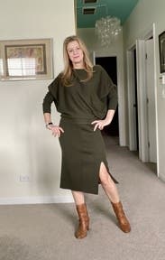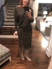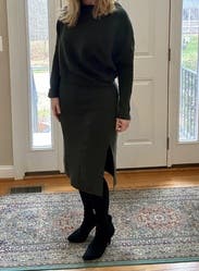 This was a cute change up on a typical sweater dress. But the top was a bit odd, it was very large so sizing down helped it not look frumpy. The material was soft and comfortable. Not my favorite, but Overall, a nice pick for the office on a cold winter day.