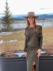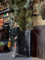 Wore this to host our business Christmas party (even found the Zara boots featured in the description). Got tons of compliments. The medium fit better, but, as others noted, it’s not as “off shoulder” as advertised, so I ended up wearing the large to better achieve that look. Being a knit, it did stretch and get bigger throughout the evening, but it was still comfortable, and I’d rent again.