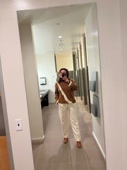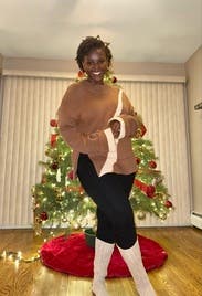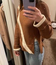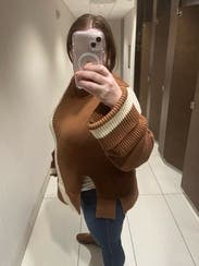 Sized down based on fit recommendations and it was the perfect amount of oversized. I loved the brown and white combination and the knit was so cozy, I wanted to live in it for multiple days in a row. Perfect for running errands around town when you need warmth and also want to look cute.